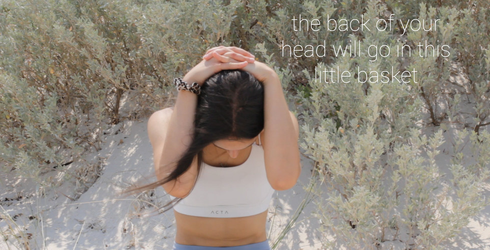 2. Next, you should align your arms. Grab onto the opposite elbows; this is the perfect distance you try not to change. Interlace your fingers and bring your head down, so that your hands are around your head.